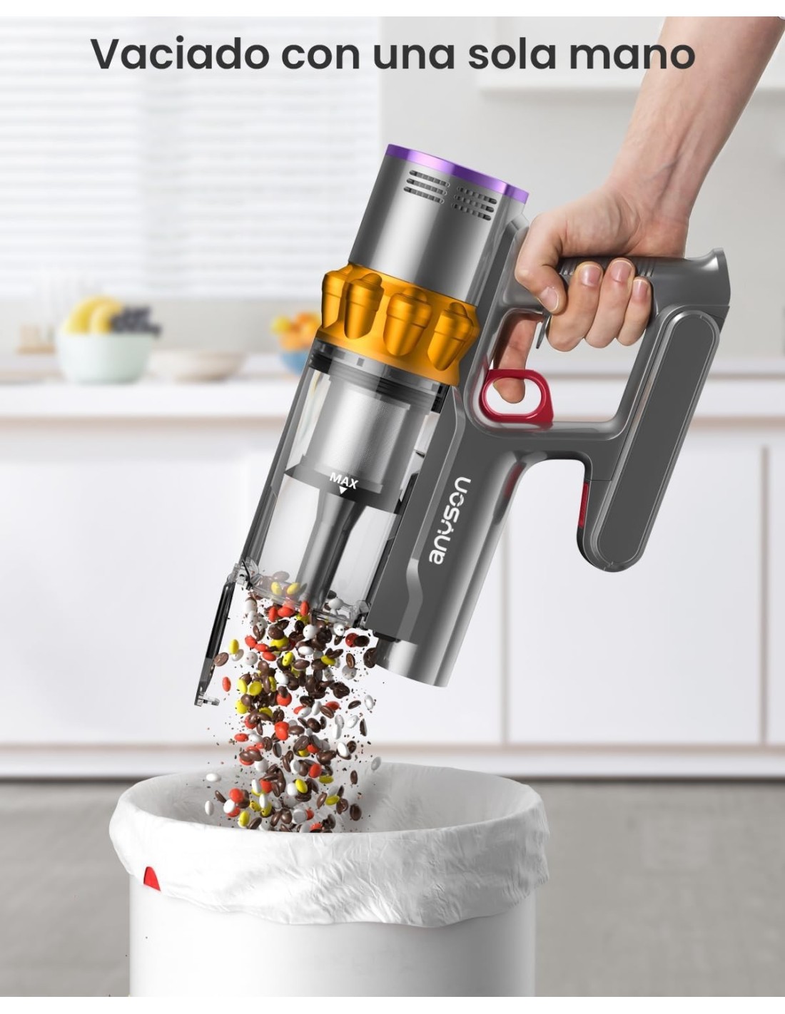Estupenda relación calidad precioReseñado en España el 8 de mayo de 2025Estoy absolutamente encantado con mi nueva aspiradora sin cable Anyson. Lo que más me ha impresionado es la increíble duración de la batería. Puedo limpiar toda la casa sin preocuparme de que se agote a mitad de camino, ¡una verdadera maravilla! Además, la luz integrada para detectar la suciedad es una pasada. Revela hasta la mota de polvo más escondida, asegurando una limpieza profunda y eficaz. Y por último, pero no menos importante, la facilidad de limpieza de la aspiradora es asombrosa. Desmontarla y vaciarla es cuestión de segundos, lo que hace que el mantenimiento sea súper cómodo. ¡Sin duda, una compra totalmente recomendada para quienes buscan potencia, autonomía y practicidad!