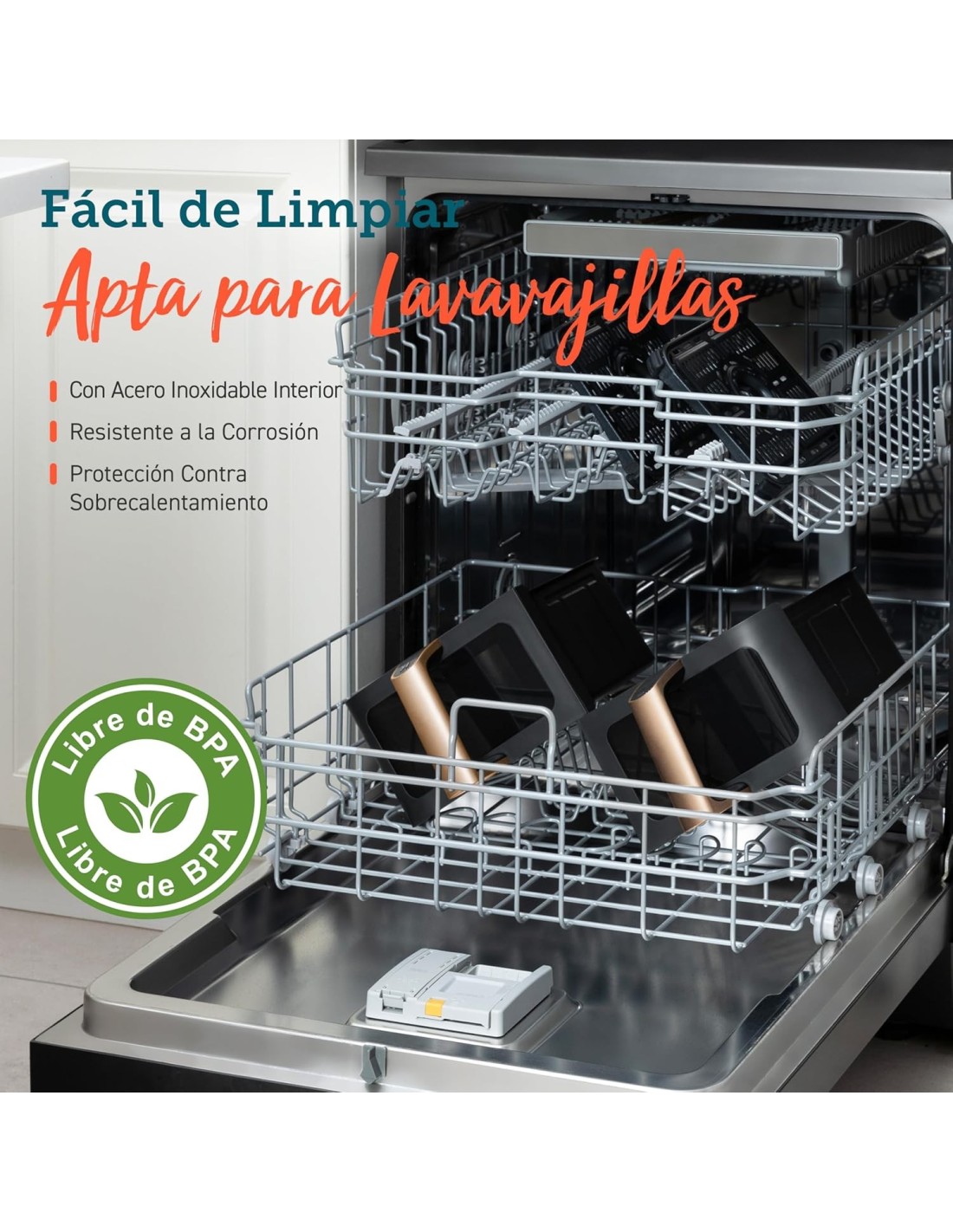 Hace más o menos un año, que en casa nos subimos al carro de las freidoras de aire para el hogar. Un método de cocción que consigue platos más saludables, gracias a su uso casi residual de aceite. Siendo muy fáciles de utilizar, aunque no sepas nada de cocina, y resultan muy cómodas, ya que ensuciamos muy pocos utensilios para tener una comida completa.Hemos estado probando durante varios días esta freidora de aire con doble cesta de la marca Cosori, y te cuento que tal ha resultado la experiencia.? Lo que encontramos en la caja ?- La freidora de aire de doble cesta modelo R901.- Dos placas de cocción extraíbles para las cestas.- Una rejilla para hornear.- Una rejilla para brochetas.- 5 brochetas metálicas.- El manual de uso.- Una pequeña guía de inicio rápido.? Diseño y calidad ?Recibimos esta freidora de aire en una llamativa y generosa caja de cartón rígido, que nos muestra el diseño físico de este modelo, y detalla algunas de sus características principales. Dentro, la freidora viene perfectamente protegida entre poliespán, para que llegue en perfecto estado a nuestra casa. El resto de elementos los encontramos dentro de las propias cestas, para que el conjunto no se mueva en absoluto y ningún componente se raye.Una vez desembalada, nos encontramos con un electrodoméstico más ancho de lo que suele ser habitual en una freidora de aire, algo bastante obvio sabiendo la característica estrella de este modelo, su doble cesta. Para que puedas tener claro que cabe correctamente en el hueco reservado de tu cocina, te comento que tiene 44 centímetros de ancho, 39 centímetros de alto y 30 centímetros de fondo. No olvides tener en cuenta que la salida de aire caliente se realiza por la parte posterior, así que hay que dejar un hueco libre en la parte de atrás y por encima de al menos 13 centímetros para que pueda evacuar este aire caliente correctamente.Tengo que comentar, que personalmente la marca Cosori me parece de los mejores fabricantes especialistas en freidoras de aire, y de hecho mi anterior freidora de aire también era de la misma marca, en concreto el modelo Dual Blaze. Y mi sensación con este nuevo modelo, es que han dado un salto importante en cuanto a la calidad de su diseño.El color predominante es claramente el color negro, combinando en la parte superior una parte plana de plástico de buena calidad que engarza directamente con la pantalla en bisel, para que podamos verla y utilizarla de una forma muy cómoda. Me gusta especialmente esta parte superior, ya que apenas se puede distinguir el cambio de la pieza de la pantalla hacia el resto de la tapa, lo que ofrece un acabado que me parece muy bonito y elegante para la cocina.En la parte frontal tenemos ambas cestas, serigrafiadas en sus mangos con L y R para que las coloquemos siempre en su posición correcta. Cada una de las cestas tiene 4,25 litros de capacidad, con lo cual tenemos en total 8,5 litros en esta freidora de doble cesto, una de las capacidades más generosas del mercado en este tipo de dispositivos.Otra característica que me gusta mucho de este modelo, es que las cestas tienen unas ventanas e iluminación interior, para que podamos controlar la cocción en cualquier momento sin tener que abrir las cestas, contribuyendo a un mayor aprovechamiento del calor interior y un cocinado homogéneo. Los cristales son muy claros y están fabricados con vidrio de borosilicato, que asegura una durabilidad excelente y resistencia a la temperatura.En la parte trasera se disponen las salidas de aire, con unas piezas de plástico que redirigen el flujo de expulsión de aire hacia arriba, y además aseguran que haya un mínimo de espacio por detrás, algo muy importante en cuanto a seguridad. De esta parte trasera también sale el cable de alimentación para enchufar la freidora.Dentro de cada una de las cestas tenemos las placas en forma de rejilla que son extraíbles para poder limpiarlas correctamente. Estas rejillas permiten que, al cocinar, el exceso de aceite y grasa se vayan al fondo y no se absorban por los alimentos. En algunas preparaciones no se usan estas rejillas, como por ejemplo al hacer bizcochos o similares.En la pantalla principal tenemos todos los controles para poder personalizar la cocción, duplicados para poder hacer ajustes distintos en cada una de las cestas, así como un par de botones para sincronizar los ajustes o sincronizar el final de la cocción, en caso de realizar funciones diferentes. Dos pequeñas pantallas LED nos ofrecen la información de temperaturas y tiempos restantes, así como notificaciones de acciones necesarias. Toda la información que se ofrece, y la nomenclatura de los botones están tan solo en inglés. La empresa de origen americano aún no traduce estos elementos, aunque la verdad es que son realmente fáciles de entender. Tanto el manual de uso, como el de inicio rápido, sí tienen su correspondiente traducción al español.? Uso y rendimiento ?Una vez que hayamos escogido el emplazamiento adecuado para esta generosa freidora de aire doble, es conveniente limpiar con agua y jabón todos los elementos que vayan a estar en contacto con la comida. Con un poco de agua y jabón podremos retirar los posibles restos que hayan quedado de la fabricación y del transporte.El fabricante también recomienda hacer una prueba de funcionamiento sin poner comida en su interior, para eliminar algún posible olor a plástico que se puede producir en un primer uso. Para ello utilizamos la opción AIR FRY a 205℃ durante 5 minutos en ambas cestas, repitiendo este proceso un par de veces, y ya tendremos nuestra freidora preparada para empezar a cocinar.Como es habitual en la mayoría de freidoras de aire, tendremos varios modos de funcionamiento, en función del tipo de cocción que necesitemos. En el caso de este modelo tenemos las siguientes:- Freír por aire (AIR FRY): El modo básico de una freidora de aire, por defecto su ajuste es a 200℃ durante 15 minuto