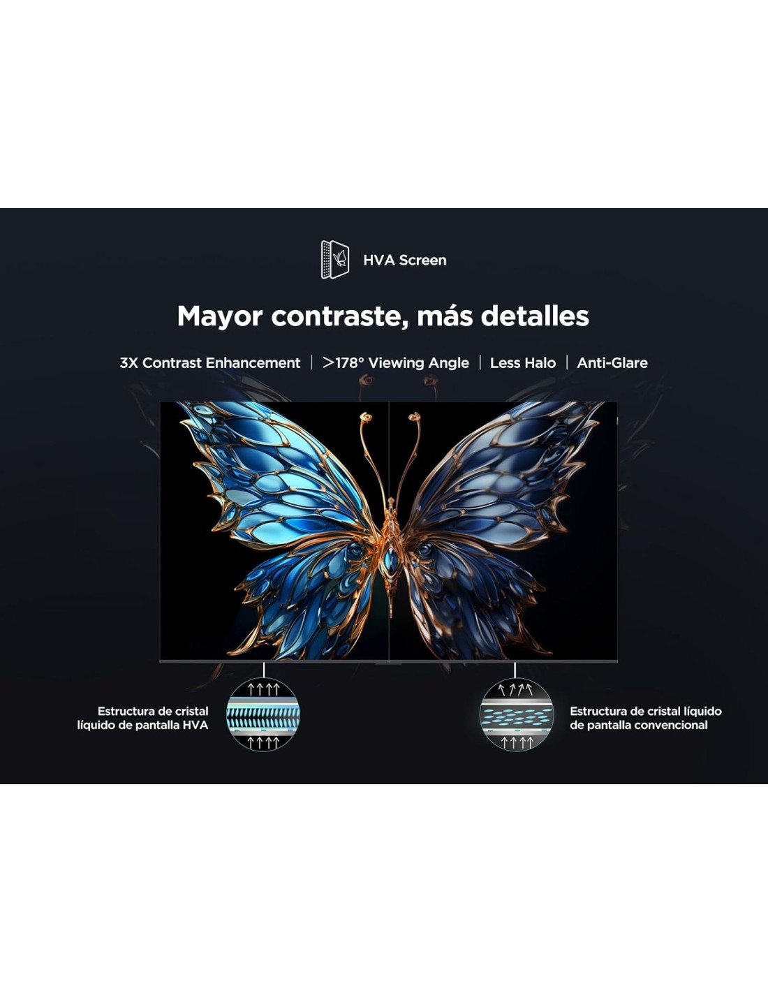 Por el precio que tiene no se puede pedir mas!!, es más si tuviera menos lo entendería. No se ve como una tope de gama con negros puros y Oled pero para que quieres más. Es un buen televisor donde vas a disfrutar de ver tus películas y series y acceder fácil a cualquier contenido con Google TV. El sonido puede ser mejor pero para un uso diario y cotidiano no necesitas más, si quieres una experiencia inmersiva total es recomendable una barra de sonido o Home Cinema. En fin si hace diez años me dicen que por 300€ puedes tener una tele de 55'' de calidad 4k y HDR no me lo creería. Por cierto el anclaje en la pared es bastante fácil, he leído reseñas diciendo que no es posible cuando si lo es.